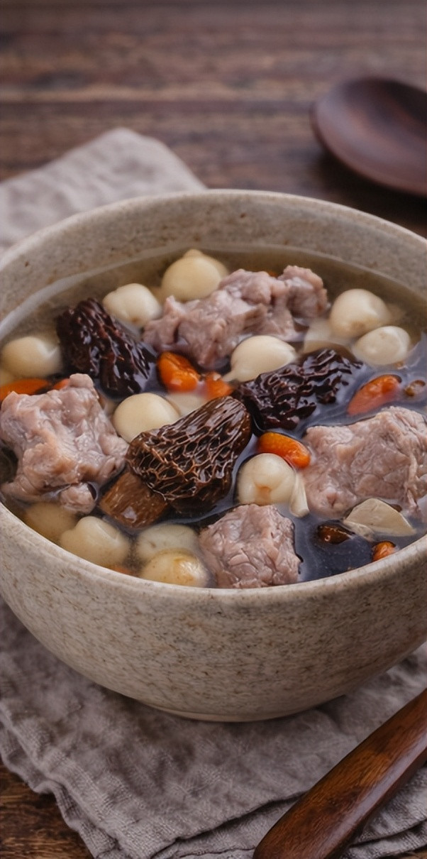 羊肚菌看着“高端”,其实对脾胃非常友好。它不寒不燥,口感细腻,搭配莲子和排骨,既能养脾胃,又能补气血,非常适合长期脾虚、容易疲劳的人。